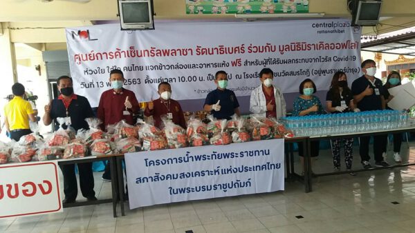 ดร.มนัส โนนุช กรรมการและผู้อำนวยการสำนักนโยบายและแผน มูลนิธิมิราเคิล ออฟไลฟ์ ร่วมกับสมาคมเชฟจิตอาสา สภาสังคมสงเคราะห์ และศูนย์การค้าเซ็นทรัลรัตนาธิเบศร์ ห่วงใยคนไทยพร้อมใจกันร่วมแจกข้าวกล่องและอาหารแห้งจำนวน 380 ชุด ให้กับผู้ที่ได้รับผลกระทบจากไวรัสโควิด-19 ณ โรงเรียนชุมชนวัดสมรโกฏิ (อยู่พูนราษฎร์บำรุง) ตำบลบางกระสอ จังหวัดนนทบุรี โดยงานบุญครั้งนี้ได้รับการประสานงานจากศูนย์ MOL สะพานสูง กรุงเทพฯ , MOL ภูผาทีม กรุงเทพฯ และ MOL บางใหญ่ จังหวัดนนทบุรี เมื่อวันที่ 13 พฤษภาคม 2563 ที่ผ่านมา สำหรับผู้ที่มีจิตศรัทธาสามารถร่วมโครงการจัดตั้งครัวประกอบอาหารเคลื่อนที่ เพื่อช่วยเหลือประชาชนผู้ยากไร้ และบุคลากรทางการแพทย์