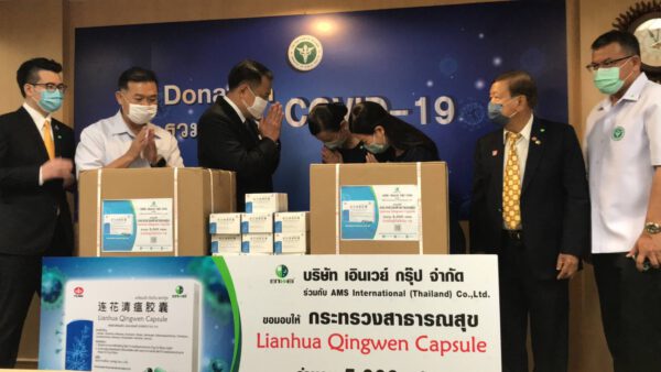 ที่ห้องรับรองกระทรวงสาธารณสุข ชั้น 3 อ.เมืองนนทบุรี น.ส.สุภาภรณ์ แซ่จาง กรรมการผู้จัดการบริษัท เอินเวย์ กรุ๊ป จำกัด ได้นำยาสมุนไพรสำเร็จรูปแบบแคปซูล ชื่อ Lianhua Qingwen Capsule ( เหลียนฮัว ชิงเวิน แคปซูล) จำนวน 5,000 กล่อง มามอบให้กับนายอนุทิน ชาญวีรกูล รองนายกรัฐมนตรี รัฐมนตรีว่าการกระทรวงสาธารณสุข เพื่อนำไปแจกจ่ายให้กับผู้ที่มีความเสี่ยงหรือผู้ที่สงสัยว่าจะติดเชื้อ โควิด-19 นำไปรับประทานเพื่อเป็นการป้องกัน