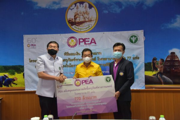 ทั้งนี้ โครงการ PEA สนับสนุนครุภัณฑ์ทางการแพทย์ โรงพยาบาลจังหวัด 77 แห่ง เฉลิมพระเกียรติเนื่องในโอกาสมหามงคลพระราชพิธีบรมราชาภิเษก เป็นโครงการสนับสนุนเงินงบประมาณครุภัณฑ์ทางการแพทย์ให้แก่โรงพยาบาลจังหวัด แห่งละ 10 ล้านบาท รวมเป็นเงิน 770 ล้านบาท เพื่อเพิ่มประสิทธิภาพในการดูแลรักษา เพิ่มโอกาสการเข้าถึงการรักษาให้แก่ประชาชนในพื้นที่ และส่งเสริมการพัฒนาระบบการให้บริการ ทางการแพทย์รวมถึงการสร้างความร่วมมือการดำเนินงานด้านสาธารณสุขอีกด้วย