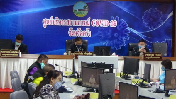 จังหวัดตรัง ร่วมประชุมผ่านระบบวีดิทัศน์ทางไกล เพื่อซักซ้อมแนวทางปฏิบัติตามมาตรการป้องกันและแพร่ระบาดของโรคติดเชื้อไวรัสโคโรนา 2019 (โควิด-19) และพร้อมทำตามคำสั่งตามมาตรการผ่อนปรน