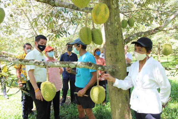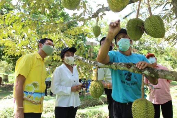 ภาครัฐและภาคเอกชนจังหวัดตรัง ตรวจเยี่ยมสวนทุเรียนทองลิขิต ซึ่งสวนเกษตรกรที่มีผลผลิตคุณภาพเป็นที่ต้องการของตลาดจนผลิตไม่เพียงพอต่อความต้องการของในจังหวัดตรังและนอกจังหวัด ตามนโยบายตลาดนำการผลิต