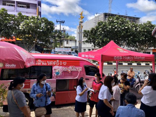 ธนาคารออมสินเขตตรัง จัดรถออมสินปันสุข เพื่อร่วมใจแบ่งปันให้แก่ลูกค้าของธนาคารและประชาชนที่ได้รับผลกระทบโควิด -19