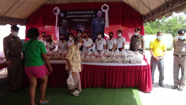 ตำรวจภูธรจังหวัดตรัง ร่วมกับองค์การบริการส่วนตำบลควนปริง มอบไข่ไก่และถุงยังชีพช่วยเหลือประชาชนที่ได้รับผลกระทบจากโควิด -19