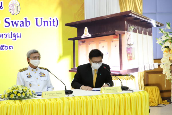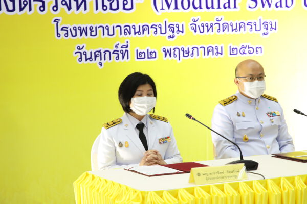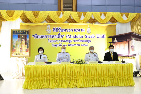 ส่วน แพทย์หญิงดารารัตน์ รัตนรักษ์ ผู้อำนวยการโรงพยาบาลนครปฐม กล่าวว่า “การตรวจหาเชื้อจากผู้ป่วยเป็นจุดที่เสียงต่อการติดเชื้อของบุคลากรทางการพทย์ ทั้งแพทย์ พยาบาล และเจ้าหน้าที่วิทยาศาสตร์การแพทย์ ดังนั้น ถ้าเรามีห้องตรวจหาเชื้อ (Modular Swab Unit) จะช่วยลดอัตราเสี่ยงจากการติดเชื้อและให้ความปลอดภัยต่อบุคลากรทางการแพทย์ผู้ปฏิบัติงานได้เป็นอย่างดี ทำให้การรักษาพยาบาลประชาชนเป็นไปอย่างมีระสิทธิภาพ พวกเราจึงรู้สึกปลื้มปีติ และสำนึกในพระมหากรุณาธิคุณอย่างหาที่สุดมิได้”