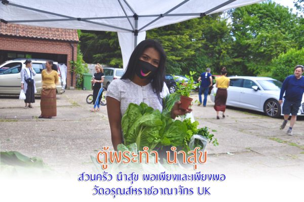 ทางวัดจึงนำโครงการโรงทาน มาต่อยอด โดยชวนคนไทยในอังกฤษ มาร่วมโครงการ ปลูกผักสวนครัว ทั้งปลูกที่วัด และปลูกที่บ้านของแต่ละคน หลังจากได้ผลผลิต จะนำมาใส่ไว้ที่ “ตู้พระทำ นำสุข” และนำมาแลกเปลี่ยนกันเพื่อประกอบอาหาร และเป็นการได้แลกเปลี่ยนผักต่างชนิดกัน ช่วยประหยัดค่าใช้จ่ายในครัวเรือนได้อีกทาง นับเป็นการสร้างวัฒนธรรมใหม่ ซึ่งถือว่าช่วงวิกฤติโควิด สร้างโอกาสที่ทำให้ได้เรียนรู้และปรับตัวเข้าสู่ชีวิตวิถีใหม่