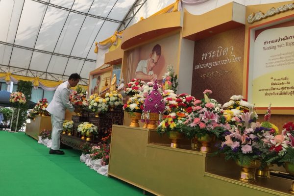 พสกนิกรชาวจังหวัดสุพรรณบุรี ร่วมสักการะพระบิดาแห่งมาตรฐาน การช่างไทย ในงานวันมาตรฐานฝีมือแรงงานแห่งชาติ เพื่อเทิดพระเกียรติพระบาทสมเด็จพระปรมินทรมหาภูมิพลอดุลยเดช ที่ทรงมีพระมหากรุณาธิคุณต่อปวงชนชาวไทย และทรงพระปรีชาสามารถด้านการช่าง