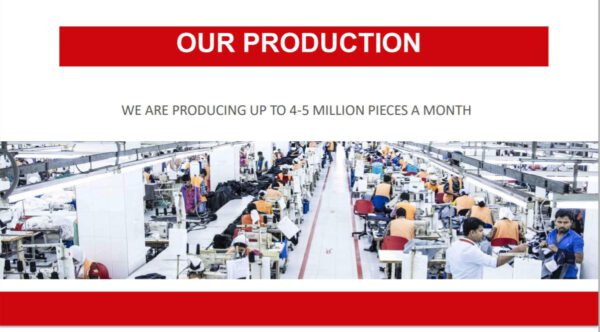 At Elegant, the annual export turnover is USD 150 million and in Elegant 1/2 Billion USD . We have worked with a variety of reputed buyers such as Gap, Target, Walmart (US) and Zara, Mango, Primark, C&A, Spring Field (Europe). There are offices located in Thailand, Dubai, and Bangladesh (headquarters).