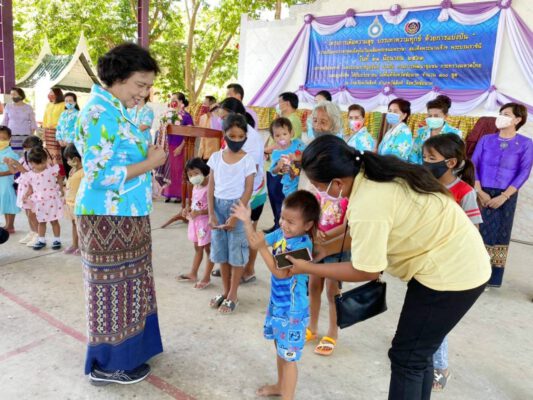 จากนั้น อธิบดีกรมการพัฒนาชุมชน ประธานสภาสตรีแห่งชาติฯ และคณะ ได้เดินทางต่อไปยัง โรงเรียนวัดสิงห์ อ.วัดสิงห์ จ.ชัยนาท เพื่อมอบถุงยังชีพจำนวน 300 ชุด ให้แก่ประชาชนชาวจังหวัดชัยนาท ที่ได้รับผลกระทบจากไวรัสโควิด-19 ตามโครงการ “เติมความสุข บรรเทาความทุกข์ ด้วยการแบ่งปัน” ถวายเป็นพระราชกุศลเนื่องในวันคล้ายวันพระราชสมภพ สมเด็จพระนางเจ้าสุทิดา พัชรสุธาพิมลลักษณ พระบรมราชินี 3 มิถุนายน 2563 โดยมี นายนที มนตริวัต รองผวจ.ชัยนาท นายวีระศักดิ์ ศรีโสภา รองผวจ.ชัยนาท นางบำเพ็ญ ศรีโสภา รองนายกเหล่ากาชาด จ.ชัยนาท นางเสริมศรี ศรีวงษ์ญาติดี รองนายก อบจ. ชัยนาท นายวัฒนา เดียวสุรินทร์ พัฒนาการจังหวัดชัยนาท นายยุทธนา แรกขึ้น นายอำเภอวัดสิงห์ นายรชต ปานสมบูรณ์ ผอ.รร. วัดสิงห์ นางนภัสกรณ์ ธูปแก้ว ประธานคณะกรรมการพัฒนาสตรี จ.ชัยนาท ผู้แทนจากภาครัฐ เอกชน ร่วมต้อนรับ