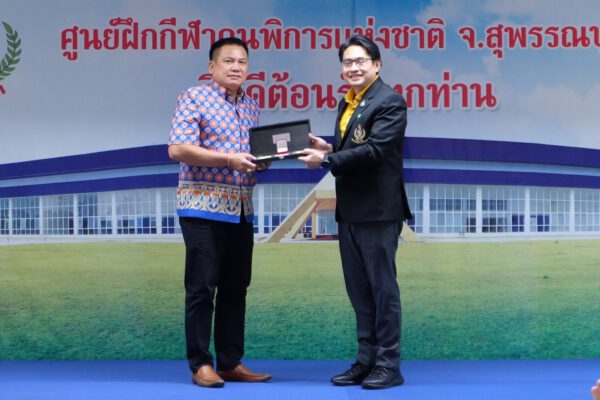 โดยมี นายนพฤทธิ์ ศิริโกศล รองผู้ว่าราชการจังหวัดสุพรรณบุรี, นายชูเกียรติ สิงห์สูง นายกสมาคมกีฬาคนพิการแห่งประเทศไทยฯ และนายอัครวิทย์ จิ๋วนารายณ์ ผู้อำนวยการสำนักงาน กกท. ภาค 2 (จังหวัดสุพรรณบุรี) ร่วมให้การต้อนรับ ณ ศูนย์ฝึกกีฬาคนพิการแห่งชาติ จังหวัดสุพรรณบุรี