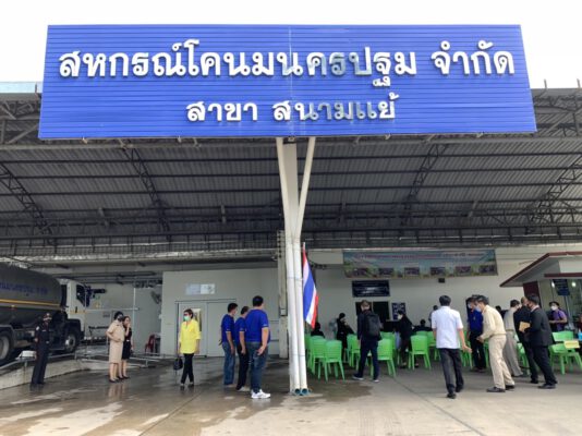 จากนั้น เดินทางไปยัง ศูนย์รวบรวมน้ำนมดิบสหกรณ์โคนมนครปฐม จำกัด สาขาสนามแย้ และสหกรณ์โคนมนครปฐม จำกัด ตำบลห้วยขวาง ดูการผลิต แปรรูปน้ำนมแบบครบวงจร และการผลิตอาหารสัตว์สำหรับจำหน่ายให้แก่สมาชิก พร้อมทั้งรับฟังปัญหาจากเกษตรกรในพื้นที่ ด้านการผลิต ด้านปัจจัยการผลิต ด้านสหกรณ์ และด้านการปฏิรูปประเทศ