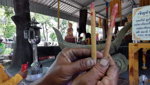 โดยที่หน้าพ่อขุนช้างมหาเศรษฐีเมืองสุพรรณ มีนางระยอง สิงห์ทอง อายุ 45 ปี อาชีพรับจ้าง เดินทางมาพร้อมครอบครัว มาจาก อ.ด่านช้าง เขย่าเซียมซียักษ์ ได้เลข 0-7 ส่วนที่หน้าศาลาแม่ตะเคียนมงคล มีนายอุดม คงอยู่ อายุอ38 ปี เถ้าแก่รถไถ เดินทางมาจาก ต.สระกระโจม อ.ดอนเจดีย์ มากราบไหว้พ่อขุนช้างและเขย่าเซียมซีที่แม่ตะเคียนมงคล ได้เลข 4 – 1 ซึ่งหวังจะนำไปเสี่ยงดวง พร้อมกับได้กล่าวว่ามาขอโชคจากพ่อขุนช้างหลายหนแล้ว ได้โชคจากอ่างน้ำมนต์มาแล้ว 3 งวด งวดนี้เลยมาขอที่แม่แม่ตะเคียนมงคล เขย่าเซียมซีนเลขำไปเสี่ยงดวง