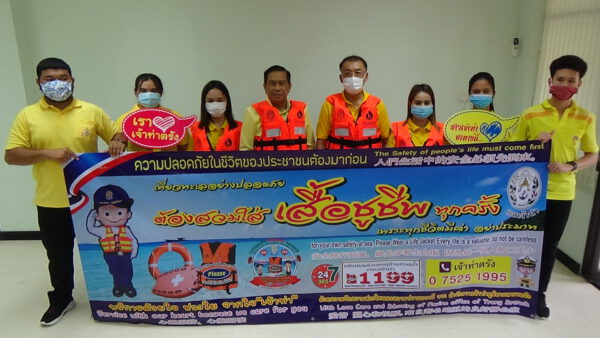 ที่ศาลากลางจังหวัดตรัง นายลือชัย เจริญทรัพย์ ผู้ว่าราชการจังหวัดตรัง รับมอบเสื้อชูชีพ พร้อมเป็นพรีเซ็นเตอร์ รณรงค์ความปลอดภัยในการสัญจรทางน้ำ ร่วมกับ นายพิเชฐ สุดเดือน ผู้อำนวยการสำนักงานเจ้าท่าภูมิภาค สาขาตรัง และสาธิตการสวมเสื้อชูชีพที่ถูกต้อง ตามแนวทาง “เที่ยวทะเลให้ปลอดภัยต้องสวมใส่เสื้อชูชีพทุกครั้ง” โดยทางจังหวัดตรังจะมีการดำเนินการประชาสัมพันธ์ให้ทุกภาคส่วนได้ตระหนักถึงความสำคัญของการรักษาความปลอดภัยในการสัญจรทางน้ำให้มากยิ่งขึ้น เนื่องจากจังหวัดตรังมีสถานที่ท่องเที่ยวที่มีชื่อเสียงทางด้านทะเล ดังนั้นความปลอดภัยของนักท่องเที่ยวและประชาชนจึงเป็นเรื่องที่สำคัญอย่างมาก