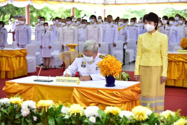 วันนี้ (28 ก.ค. 63) ที่บริเวณศาลากองอำนวยการ องค์พระปฐมเจดีย์ อำเภอเมือง จังหวัดนครปฐม นายชาญนะ เอี่ยมแสง ผู้ว่าราชการจังหวัดนครปฐม พร้อมด้วย รองผู้ว่าราชการจังหวัด หัวหน้าส่วนราชการ ข้าราชการ ทหาร ตำรวจ นักเรียน นักศึกษา และประชาชนชาวจังหวัดนครปฐม ร่วมพิธีลงนามถวายพระพรชัยมงคล และพิธีถวายสัตย์ปฏิญาณเพื่อเป็นข้าราชการที่ดีของแผ่นดิน เนื่องในโอกาสวันเฉลิมพระชนมพรรษาพระบาทสมเด็จพระเจ้าอยู่หัว 28 กรกฎาคม 2563 โดยผู้ว่าราชการจังหวัดนครปฐม เปิดกรวยกระทงดอกไม้ ธูปเทียนแพถวายราชสักการะ เบื้องหน้าพระบรมฉายาลักษณ์ พระบาทสมเด็จพระเจ้าอยู่หัว จากนั้นนำผู้เข้าร่วมพิธีลงนามถวายพระพรชัยมงคล นำกล่าวถวายสัตย์ปฏิญาณ และร่วมร้องเพลงสรรเสริญพระบารมี เพื่อน้อมรำลึกในพระมหากรุณาธิคุณของสมเด็จพระเจ้าอยู่หัว ที่ทรงประกอบพระราชกรณียกิจน้อยใหญ่ เพื่อความผาสุกของพสกนิกรชาวไทยทุกหมู่เหล่า