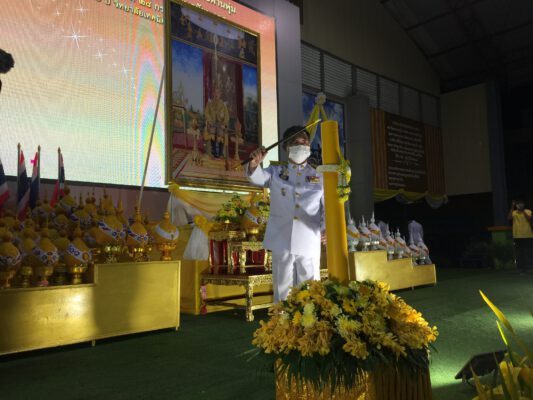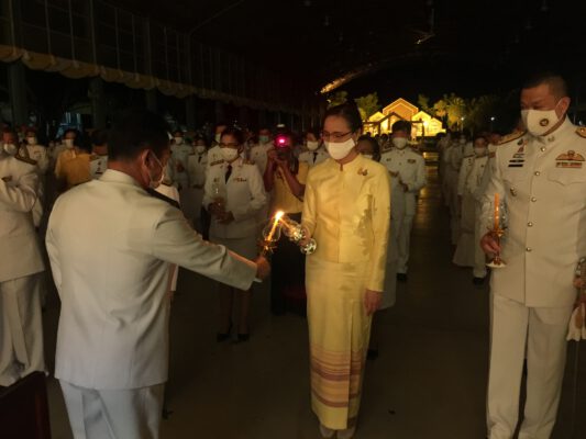 จากนั้นผู้ว่าราชการจังหวัดสุพรรณบุรี นำผู้เข้าร่วมพิธีจุดเทียนชัยถวายพระพรชัยมงคลแด่ พระบาทสมเด็จพระวชิรเกล้าเจ้าอยู่หัว และกล่าวถวายราชสดุดีเฉลิมพระเกียรติฯ ร่วมร้องเพลงสรรเสริญพระบารมี เพลงสดุดีจอมราชา และเปล่งเสียง “ทรงพระเจริญ” 3 ครั้ง พร้อมกับประชาชนสุพรรณบุรีทุกหมู่เหล่า ดังกึกก้อง เพื่อเป็นการแสดงความจงรักภักดี และสำนึกในพระมหากรุณาธิคุณ