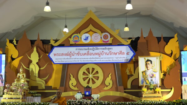 ในการนี้ คณะกรรมการขับเคลื่อนโครงการฯ “หมู่บ้านรักษาศีล ๕” โดยการนำของพระเทพศาสนาภิบาล ประธานคณะกรรมการขับเคลื่อนโครงการหมู่บ้านรักษาศีล ๕ ส่วนกลางร่วมกับ วิทยาลัยสงฆ์พุทธปัญญาศรีทวารวดี กองทุนพัฒนาสื่อปลอดภัยและสร้างสรรค์ และสำนักงานพระพุทธศาสนาแห่งชาติ จึงได้กำหนดจัดอบรมเชิงปฏิบัติการหลักสูตร “พระสงฆ์ผู้นำขับเคลื่อนหมู่บ้านรักษาศีล ๕” รุ่นที่ ๒ ระหว่างวันที่ ๓๐ กรกฎาคม – ๑ สิงหาคม ๒๕๖๓ ณ วัดไร่ขิง พระอารามหลวง จังหวัดนครปฐม โดยมีพระพรหมเสนาบดี กรรมการมหาเถรสมาคม ประธานที่ปรึกษาคณะกรรมการขับเคลื่อนโครงการหมู่บ้านรักษาศีล ๕ เป็นประธานในพิธีเปิดการอบรม