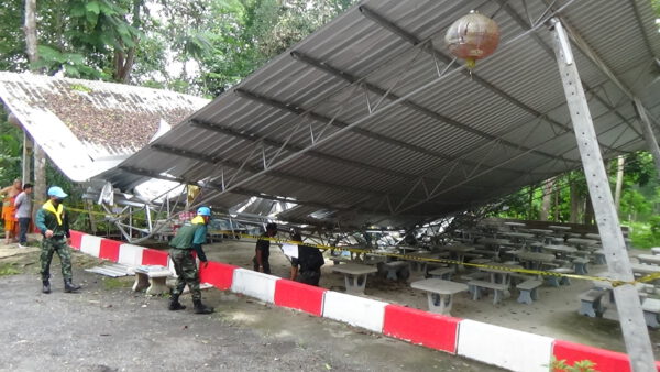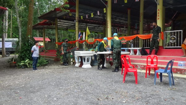 จิตอาสากองพันทหารราบที่ 4 กรมทหารราบที่ 15 ค่ายพระยารัษฎานุประดิษฐ์ อำเภอห้วยยอด จังหวัดตรัง ออกสำรวจความเสียหายจากลมพายุพัดสร้างความเสียหายให้กับสำนักปฏิบัติธรรม โดยการขนย้ายสิ่งของ และเตรียมร่วมกับชาวบ้านในรื้อหลังคาที่พังออกแล้งซ่อมแซมใหม่