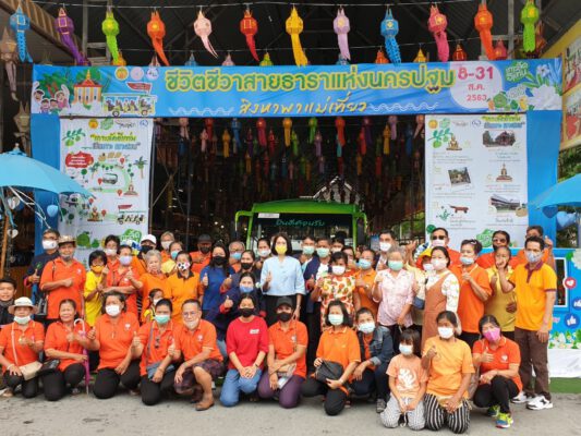วันที่ 8 สิงหาคม 2563 ณ วัดไร่ขิง ตำบลไร่ขิง อำเภอสามพราน จังหวัดนครปฐม นางสาวสรียา บุญมาก ผู้อำนวยการ ททท. สำนักงานราชบุรี เป็นประธานเปิดกิจกรรม “สิงหาพาแม่เที่ยวนครปฐม” ในโครงการชีวิตชีวา สายธาราแห่งนครปฐม โดยมีนายสุวิทย์ ฤทธิ์คำรพ รองประธานกลุ่มวิสาหกิจชุมชนท่องเที่ยวเกาะลัดอีแท่น กล่าวรายงานวัตถุประสงของการจัดงาน นายลือยศ บรรพกาญจน์ รองนายกเทศมนตรีเมืองไร่ขิง นางสาวอังคณา จีนานนท์ ผู้อำนวยการฝ่ายขายและการตลาดสวนสามพราน นางวันเพ็ญ นรารอด ประธานท่องเที่ยวชุมชนบ้านศาลาดิน ผู้แทนท่องเที่ยวและกีฬาจังหวัดนครปฐม ร่วมเป็นเกียรติในงาน