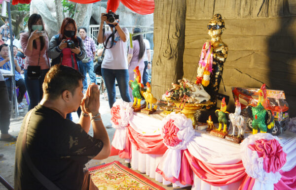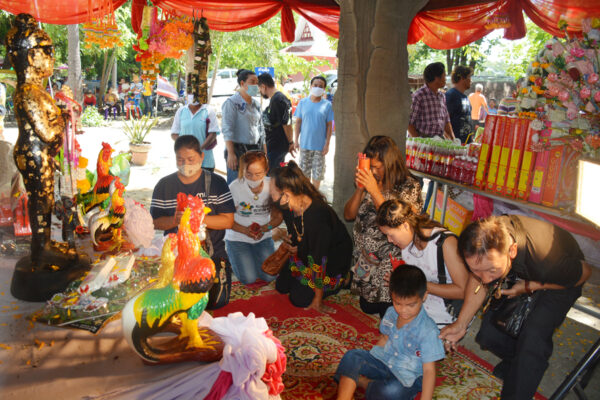 ซึ่งได้กล่าวว่า ก่อนหน้าได้มาเข้าพิธีถวายสังฆทาน ขอขมากรรม และมาขอพรไอ้ไข่ ศิษย์วัดเจดีย์ ก่อนหวยจะออกในงวดที่ผ่านมา จึงได้มาแก้บนในวันนี้ ซึ่งจากเลขหางประทัด ปรากฏเลข 92 และ 339 ชาวบ้านได้มุงถ่ายรูปก่อนนำไปหาซื้อสลากกินแบ่งรัฐบาล เพื่อหวังมีโชคในงวดที่จะถึงนี้อีกด้วย