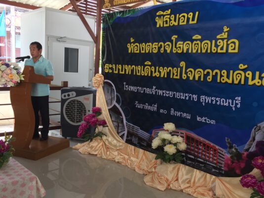 วันนี้(30 ส.ค.63) ที่อาคารฮ่วมใจ๋จาวเหนือ โรงพยาบาลเจ้าพระยายมราช จังหวัดสุพรรณบุรี คุณหญิงแจ่มใส ศิลปอาชา เป็นประธานรับมอบห้องตรวจโรคติดเอระบบทางเดินหายใจความดันลบ โดยนายนิมิต วันไชยธนวงศ์ ผู้ว่าราชการจังหวัดสุพรรณบุรี กล่าวว่า