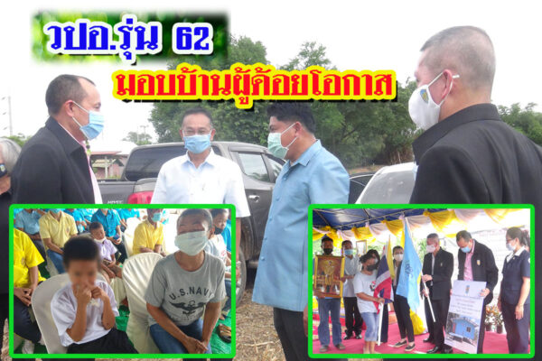 ผู้สื่อข่าวรายงานว่า เมื่อเร็วๆนี้ ที่บ้านเลขที่ 11 หมู่ที่ 5 ตำบลหลุมรัง อำเภอบ่อพลอย จังหวัดกาญจนบุรี นายสมยศ ศิลปีโยดมรองผู้ว่าราชการจังหวัดกาญจนบุรี ร่วมกับนักศึกษาวิทยาลัยป้องกันราชอาณาจักร (วปอ.) รุ่นที่ 62 ในกิจกรรม “จิตอาสา” เราทำความดีเพื่อชาติ ศาสน์ กษัตริย์ มอบบ้านให้แก่ผู้ยากไร้ โดยนักศึกษาวิทยาลัย วปอ. รุ่นที่ 62 โดยมี พลโท พิสัณห์ ปฐมเอม เป็นผู้อำนวยการ ซึ่งได้มอบบ้านให้กับผู้ยากไร้ จำนวน 4 หลัง โดยจำนวนนี้ มีเด็กที่ด้อยโอกาสทางการศึกษาที่อยู่ในโครงการกองทุนเพื่อความเสมอภาคทางการศึกษา ในอำเภอหนองปรือ เข้ารับสิทธิ์ในครั้งนี้ด้วย โดยมี นางสาวแรมรุ่ง วรวัธ ผู้ตรวจราชการกระทรวงการพัฒนาสังคมและความมั่นคงของมนุษย์ นักศึกษา วปอ.รุ่น 62 นำคณะและเข้าร่วมกิจกรรมครั้งนี้ ซึ่งได้รับการสนับสนุนกำลังทหารจาก มทบ.17 จากกองพลทหารราบที่ 9 ที่เข้ามาช่วยเหลือในการสร้างบ้านให้ผู้ยากไร้ดังกล่าว และพร้อมที่จะสนับสนุนงบประมาณการช่วยเหลือในโอกาสต่อๆไปด้วย
