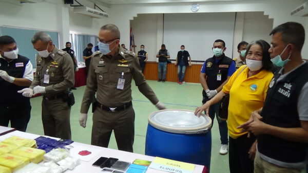 ที่กองบังคับการตำรวจภูธรจังหวัดตรัง พลตำรวจตรีถาวร แสงฤทธิ์ ผู้บังคับการตำรวจภูธรจังหวัดตรัง พร้อมด้วย พ.ต.อ.สันทัด วินสน รองผู้บังคับการตำรวจภูธรจังหวัดตรัง พ.อ.ธีรวัฒน์ ปิ่นแก้ว รองผู้อำนวยการรักษาความมั่นคงภายในจังหวัดตรัง(ทหาร) นายณัฐวุฒิ สังข์สุข ป้องกันจังหวัดตรัง และ ป.ป.ส.ภาค 9 ได้ร่วมแถลงผลการจับกุมยาเสพติดรายสำคัญ 2 คดี ดังนี้คดีที่ 1 เมื่อวันที่ 16 กันยายน 2563 เจ้าหน้าที่ตำรวจ สถานีตำรวจภูธรสิเกา สถานีตำรวจภูธรหนองตรุด และ ชุดปราบปรามยาเสพติดภูธรจังหวัดตรัง ได้ร่วมกันจับกุมตัว นายนรสิงห์ เสนารักษ์ อายุ 56 ปี บ้านเลขที่ 218/1 ม.1 ต.บ่อหิน อ.สิเกา จ.ตรัง นายศิริวัฒน์ ชูเสียงแจ้ว อายุ 25 ปี บ้านเลขที่ 245/5 ม.1 ต.บ่อหิน อ.สิเกา จ.ตรัง พร้อมของกลาง ยาบ้า จำนวน 77,009 เม็ด ไอซ์ จำนวน 1.5 กิโลกรัม เครื่องชั่งดิจิตอล จำนวน 2 เครื่อง กระสุนปืน ขนาด .45 จำนวน 60 นัด อาวุธปืนลูกซองยาว จำนวน 1 กระบอก เหตุเกิดที่ขนำไม่มีเลขที่อยู่ในพื้นที่บ้านเลขที่ 218 ม.1 ต.บ่อหิน อ.สิเกา จ.ตรัง คดีที่ 2 เมื่อวันที่ 20 กันยายน 2563 เจ้าหน้าตำรวจชุด ชุดปราบปรามยาเสพติดภูธรจังหวัดตรัง ได้ร่วมกันจับกุมตัวนายกันตพงศ์ เอียดจุ้ย บ้านเลขที่ 209 ม.5 ต.นาโยงเหนือ อ.นาโยง จ.ตรัง นายวิเชษฐ์ นาศรี บ้านเลขที่ 47/1 ม.5 ต.นาโยงเหนือ อ.นาโยง จ.ตรัง พร้อมด้วยของกลาง ยาบ้า จำนวน 400,000 เม็ด อาวุธปืนพกสั้น ขนาด 11 มม. จำนวน 1 กระบอก รถยนต์ ยี่ห้อฮอนด้า จำนวน 1 คัน เหตุเกิด บริเวณถนนสายเลี่ยงเมืองตรัง ม.5 ต.บ้านโพธิ์ อ.เมืองตรัง จ.ตรัง