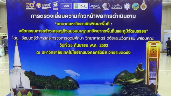 รัฐมนตรีว่าการกระทรวงการอุดมศึกษา วิทยาศาสตร์ วิจัยและนวัตกรรม และคณะตรวจเยี่ยมความก้าวหน้าผลการดำเนินงาน “บทบาทมหาวิทยาลัยพัฒนาพื้นที่ : นวัตกรรมการสร้างเศรษฐกิจชุมชนบนฐานทรัพยากรพื้นถิ่นและภูมิวัฒนธรรม” ของมหาวิทยาลัยเทคโนโลยีราชมงคลศรีวิชัย