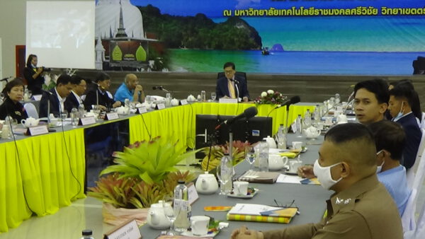 ที่ห้องประชุมดุหยง มหาวิทยาลัยเทคโนโลยีราชมงคลศรีวิชัย วิทยาเขตตรัง ศาสตราจารย์พิเศษ ดร.เอนก เหล่าธรรมทัศน์ รัฐมนตรีว่าการกระทรวงการอุดมศึกษา วิทยาศาสตร์ วิจัยและนวัตกรรม พร้อมคณะเดินทางลงพื้นที่ตรัง เพื่อตรวจเยี่ยมความก้าวหน้าผลการดำเนินงาน “บทบาทมหาวิทยาลัยพัฒนาพื้นที่ : นวัตกรรมการสร้างเศรษฐกิจชุมชนบนฐานทรัพยากรพื้นถิ่นและภูมิวัฒนธรรม” ของมหาวิทยาลัยเทคโนโลยีราชมงคลศรีวิชัย โดยมี นายไพบูลย์ โอมาก รองผู้ว่าราชการจังหวัดตรัง กล่าวต้อนรับ และมี ศาสตราจารย์ ดร.เปี่ยมศักดิ์ เมนะเศวต นายกสภามหาวิทยาลัยเทคโนโลยีราชมงคลศรีวิชัย กล่าวรายงาน มหาวิทยาลัยเทคโนโลยีราชมงคลศรีวิชัย มีประวัติความเป็นมาโดยย่อ คือ ในปี พ.ศ.2518 ได้มีพระราชบัญญัติจัดตั้งวิทยาลัยเทคโนโลยีและอาชีวศึกษา เพื่อผลิตครูอาชีวศึกษาระดับปริญญาตรีให้การศึกษาทางด้านอาชีพทั้งระดับต่ำกว่าปริญญาตรีและประกาศนียบัติชั้นสูง ทำการวิจัยส่งเสริมการศึกษาทางด้านวิชาชีพ และให้บริการทางวิชาการแก่สังคม ต่อมาในปี 2531 พระบาทสมเด็จพระปรมินทรมหาภูมิพลอดุลยเดช ทรงพระกรุณาโปรดเกล้าฯ พระราชทานชื่อใหม่ว่า “สถาบันเทคโนโลยีราชมงคล” เมื่อมีการปฏิรูปการศึกษาตามพระราชบัญญัติการศึกษาแห่งชาติ พ.ศ.2542 ที่มุ่งเน้นการกระจายอำนาจ การบริหารจัดการสู่สถานศึกษาระดับอุดมศึกษา สถาบันเทคโนโลยีราชมงคลแก้ไขพระราชบัญญัติฉบับเดิมเป็นพระราชบัญญัติมหาวิทยาลัยเทคโนโลยีราชมงคล โดยมีการรวมวิทยาเขตจัดตั้งเป็นมหาวิทยาลัยเทคโนโลยีราชมงคล จำนวน 9 แห่ง โดยมีวัตถุประสงค์ให้ 9 มหาวิทยาลัยเป็นมหาวิทยาลัยสายวิทยาศาสตร์และเทคโนโลยีที่สามารถจัดการศึกษา วิชาการและวิชาชีพที่เน้นการปฏิบัติ เพื่อรองรับการศึกษาต่อของผู้สำเร็จการศึกษาจากสถาบันอาชีวศึกษาเป็นหลัก รวมถึงให้โอกาสแก่ผู้เรียนจากวิทยาลัยชุมชน และการศึกษาขั้นพื้นฐานในการศึกษาต่อวิชาชีพระดับปริญญาตรี