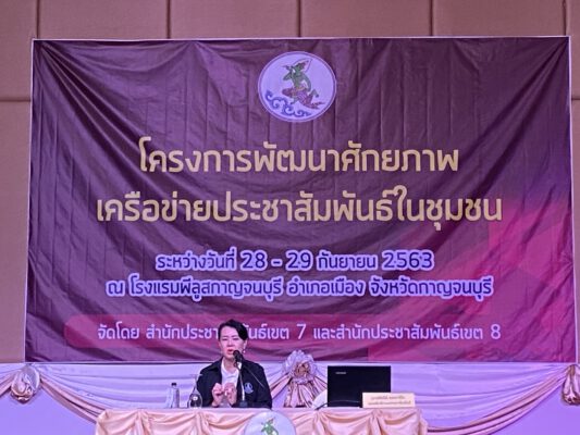 เนื่องจากผู้บริหารกรมประชาสัมพันธ์ เห็นความสำคัญของเครือข่ายประชาสัมพันธ์ในชุมชน ที่เป็นแกนนำสำคัญ ในการขับเคลื่อนงานประชาสัมพันธ์ ร่วมกับหน่วยงานภาครัฐ คือ กรมประชาสัมพันธ์ในภูมิภาค จึงได้มอบหมายให้ สำนักประชาสัมพันธ์เขต 7 และสำนักประชาสัมพันธ์เขต 8 ร่วมกันจัดโครงการพัฒนาศักยภาพเครือข่ายประชาสัมพันธ์ในชุมชน ภาคตะวันออก และภาคกลาง ขึ้น ระหว่างวันที่ 28-29 กันยายน2563 ผู้เข้าร่วมโครงการฯ จำนวน 200 คน ประกอบด้วย อาสาสมัครประชาสัมพันธ์ประจำหมู่บ้าน และชุมชน(อป.มช.) อาสาสมัครสาธารณสุขประจำหมู่บ้าน (อสม.) และผู้นำชุมชนที่ดูแลหอกระจายข่าวและเสียงตามสาย นักจัดรายการวิทยุหลัก,วิทยุชุมชน , สื่อมวลชนท้องถิ่น และผู้บริหารกรมประชาสัมพันธ์ ในพื้นที่ 25 จังหวัด ภาคตะวันออกและภาคกลาง