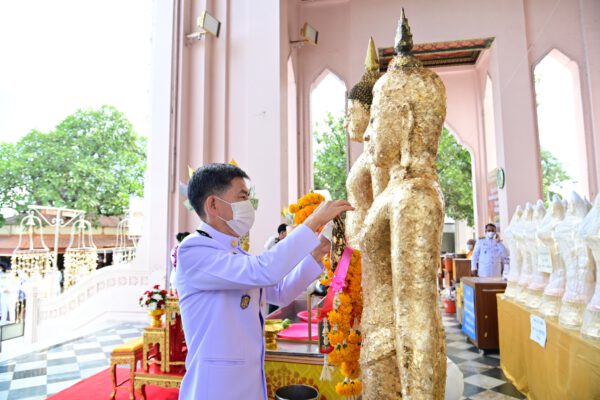 จากนั้น ได้เดินทางมาศาลากลางจังหวัดนครปฐม จุดธูปเทียนบูชาพระร่วงโรจนฤทธิ์(องค์จำลอง) และถวายราชสักการะพระบรมราชานุสาวรีย์ รัชกาลที่ 5 บูชาพระพุทธนวราชบพิตร บูชาพระพุทธเมตตาประชาไทยไตรโลกนาถคันธารราฐอนุสรณ์ และถวายความเคารพพระแสงราชศัสตราประจำจังหวัดนครปฐม