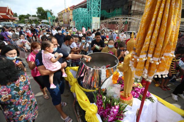มีนายสมชาติ สาลีพัฒนา (เฮียเงี๊ยบ เจ้าของร้านก๋วยเตี๋ยวลูกชิ้นปลานายเงี๊ยบ)เป็นประธานฝ่ายฆารวาสร่วมด้วยพุทธศาสนิกชนจำนวนมาก ที่มาทำบุญสืบสานวัฒนธรรมประเพณี ทำบุญตักบาตรวันออกพรรษา เพื่อสืบสานวัฒนธรรมประเพณีของชาวพุทธที่สืบสานต่อกันมาอย่างยาวนาน