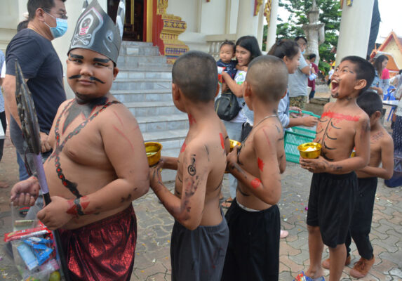 ที่วัดเถรพลาย ตำบลวังน้ำซับ อำเภอศรีประจันต์ จังหวัดสุพรรณบุรี หลังเทศกาลงานออกพรรษา พุทธศาสนิกชนจำนวนมาก ได้ร่วมกันสืบสานประเพณีตักบาตรขนมครก 8 สี หนึ่งเดียวของประเทศไทย เพื่อแก้บนหลวงพ่อโตศักดิ์สิทธิ์