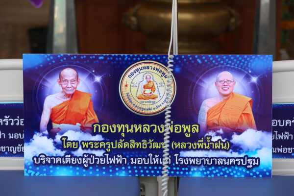 พระครูปลัดสิทธิวัฒน์ หลวงพี่น้ำฝน เจ้าอาวาสวัดไผ่ล้อม กล่าวว่า การมอบเตียงผู้ป่วยแบบไฟฟ้า ในครั้งนี้ ทางกองทุนหลวงพ่อพูล โดยพระครูปลัดสิทธิวัฒน์ (หลวงพี่น้ำฝน) พร้อมคณะศิษยานุศิษย์ หลายท่าน ได้ร่วมกันสร้างกุศลใหญ่นี้ขึ้นเพื่อให้ผู้ป่วยที่รักษาตัวในโรงพยาบาลได้ใช้ประโยชน์ ซึ่งกองทุนหลวงพ่อพูล โดยพระครูปลัดสิทธิวัฒน์(หลวงพี่น้ำฝน) พร้อมที่จะเดินหน้าช่วยเหลือสังคมให้เกิดประโยชน์สุขกับประชาชนให้มากที่สุด และได้มีการจัดมอบเตียงไฟฟ้าสำหรับผู้ป่วยให้กับโรงพยาบาลศูนย์นครปฐม นำไปใช้ ณ อาคาร 100 ปี สาธารณสุขโรงพยาบาลนครปฐม ไปแล้วก่อนหน้านี้จำนวน 161 เตียง ด้วยกัน และในวันนี้ได้มีการมอบเพิ่มเติมอีก 4 เตียง ซึ่งเป็นเตียงที่ได้มาตรฐาน การรับรองจาก CE. UL และเป็นมาตรฐานสากล เทียบเท่ากับที่ใช้ในห้องพิเศษโรงพยาบาลเอกชน ทำให้เป็นการยกระดับทางการดูแลและฟักฟื้นของผู้ป่วยให้เกิดความสะดวก สบายทั้งผู้ป่วย ญาติ และทีมแพทย์ พยาบาล ผู้ทำการรักษา
