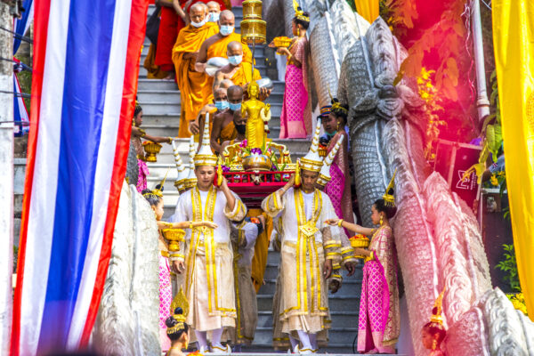พิธีตักบาตรเทโววันออกพรรษาปีนี้ จังหวัดอุทัยธานีได้จัดขึ้นอย่างยิ่งใหญ่ ที่วัดสังกัสรัตนคีรี เทศบาลเมืองอุทัยธานี มีประชาชนเรือนหมื่นเข้าร่วมพิธี โดยมี มนัญญา ไทยเศรษฐ์ รัฐมนตรีช่วยว่าการกระทรวงเกษตรและสหกรณ์ เป็นประธานในพิธี ซึ่งการตักบาตรในวันนี้มีลักษณะพิเศษ คือ จะอัญเชิญพระพุทธรูปขึ้นประดิษฐานบนล้อเลื่อนที่บุษบก หรือขบวนรถทรง มีบาตรวางตั้งอยู่ด้านหน้า และจะมีคนลากล้อเลื่อนไปอย่างช้าๆ ข้าวต้มลูกโยน ตักบาตรเทโว ออกพรรษา 2563 ขบวนพระสงฆ์ก็จะเดินตามเรียงเป็นแถวงดงาม พุทธศาสนิกชนก็จะนั่งเรียงเป็นแถว และนำ ข้าวต้มลูกโยน มเทวโลกาใส่บาตร ซึ่งถือว่าเป็นสัญลักษณ์ในการตักบาตรเทโว โดยมีพระสงฆ์ 500 รูปเดินลงจากยอดเขาสะแกกรังผ่านขั้นตอน 449 ขั้นบันได ลงมาเพื่อให้ประชาชนที่รออยู่ด่านล่าง ได้ใส่บาตรกัน โดยมีมัคนายก เดินอัญเชิญพระพุทธรูปนำหน้าแถวพระสงฆ์