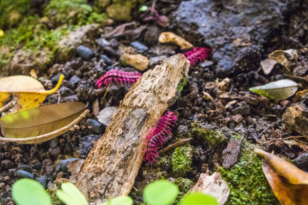 โดยมีจุดชมวิวที่เผยให้เห็นภาพอันน่ามหัศจรรย์ของป่าตาด พืชตระกูลปาล์ม มีใบเป็นแฉกแผ่กว้าง เจริญเติบโตได้ดีในพื้นที่ป่าดงดิบที่มีอากาศเย็นชื้นสภาพหนาทึบ ขึ้นปกคลุมตลอดเส้นทางเดิน ราวกับว่ากำลังหลุดอยู่ในโลกยุคดึกดำบรรพต์ หากมาเที่ยวในช่วงฤดูฝนตั้งแต่ประมาณเดือนสิงหาคม – พฤศจิกายน จะได้พบเห็นเจ้ากิ้งกือมังกรสีชมพู มีสีชมพูสดใสมองไปมองมาคล้ายเกสรดอกไม้ มีลักษณะโดดเด่นด้วยลวดลายและปุ่มหนามคล้ายมังกร พบได้ในป่าที่มีความชุ่มชื้นสูงและอุดมสมบูรณ์ เมื่อโตเต็มที่จะมีลำตัวยาวประมาณ 7 เซนติเมตร ถือว่าเป็นสัตว์ไฮไลท์พบได้แห่งเดียวในโลกที่หุบป่าตาด โดยมันจะคลานอยู่ตามพื้นกำแพงทางเดินบ้าง ตามต้นไม้บ้าง ต้องคอยสังเกตให้ดี เพราะตัวค่อนข้างเล็ก เดินเข้ามาเกือบสุดเส้นทางจะพบกับถ้ำอีก 1 ถ้ำ แบบเปิดโล่งพอเห็นแสง มีหินงอกหินย้อย และหินปูน ซึ่งลวดลายหินที่งดงาม หากมาเที่ยวในช่วงกลางวันจะมีแสงอาทิตย์สาดส่องลงมากลางหุบที่ล้อมรอบด้วยภูเขาหินปูนสูงชัน