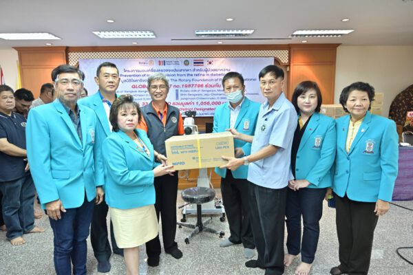 เมื่อวันที่ 29 กันยายน 2563 ที่ โรงพยาบาลห้วยพลู อ.นครชัยศรี จ.นครปฐม มูลนิธิโรตารีของโรตารีสากล ร่วมกับ สโมสรโรตารีกรุงเทพ บางขุนเทียน / สโมสรโรตารีนครชัยศรี และ สโมสรโรตารีทวารวดี ซึ่งมี อภผ.เจสัน ลิม ประธานมูลนิธิโรตารี ภาค3350 และ อภผ.จุฑาทิพย์ ธรรมศิริพงศ์ อดีตผู้ว่าการ โรตารีสากลภาค 3330 เป็นประธานมอบเครื่องตรวจจอประสาทตา สำหรับผู้ป่วยเบาหวาน มูลค่า 1,056,000 ($ 33,600) ให้กับโรงพยาบาลห้วยพลู โดยมีเภสัชกรวิชัย สุวรรณเทวคุป รอง ผอ.รพ.ห้วยพลูเป็นตัวแทนรับมอบเครื่องตรวจจอประสาทตา