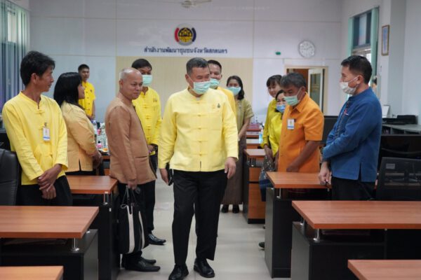 ในการนี้ อธิบดี พช. ได้ตรวจเยี่ยมให้กำลังใจเจ้าหน้าพัฒนาชุมชนจังหวัดสกลนคร พร้อมมอบแนวทางในการทำสำนักงานให้เป็นเสมือนโชว์รูมผลิตภัณฑ์ OTOP เด่นของจังหวัด และเป็นแหล่งข้อมูลชุมชนท่องเที่ยว OTOP นวัตวิถีของจังหวัดให้กับนักท่องเที่ยวหรือผู้มาติดต่อราชการ และฝากชวนให้ชาวบ้านช่วยกันปลูกผักสวนครัวอย่างต่อเนื่อง เพื่อให้เกิดพลังและสามารถพึ่งพาตนเองได้อย่างยั่งยืน โดยมีนายจิรศักดิ์ สีหามาตย์ พัฒนาการจังหวัดสกลนคร และทีมงานให้การต้อนรับ