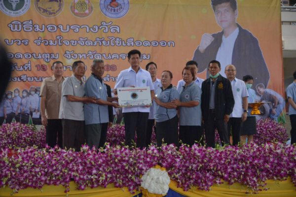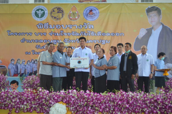 โครงการดังกล่าวทุกภาคส่วนราชการ ภาครัฐ ส่วนท้องถิ่น ส่วนท้องที่ การศึกษา การศาสนา การสาธารณสุขและภาคประชาชนโดยเฉพาะอย่างยิ่งอาสาสมัครสาธารณสุขประจำหมู่บ้าน (อสม.) ได้ดำเนินงานด้านการควบคุมป้องกันโรค ภายใต้กรอบแนวทางการดำเนินงานตามคุณลักษณะทั้ง 5 ด้าน ได้แก่ มีคณะกรรมการป้องกันควบคุมโรคและภัยสุขภาพ มีการวางแผนยุทธศาสตร์ป้องกันควบคุมโรคและภัยสุขภาพ มีระบบระบาดวิทยาที่ดี มีการระดมทรัพยากรจากหน่วยงานที่เกี่ยวข้อง และมีผลสำเร็จของการควบคุมป้องกันโรคที่สำคัญ เป็นเครื่องมือที่จะบูรณาการดำเนินงานของภาครัฐภายใต้การมีส่วนร่วมจากภาคท้องถิ่นและภาคประชาชน (อสม.) สามารถนำไปขับเคลื่อนการป้องกันควบคุมโรคไข้เลือดออกในพื้นที่อำเภอดอนตูม จังหวัดนครปฐมให้ลดอัตราป่วยโรคไข้เลือดออกต่ำที่สุดในจังหวัดนครปฐม จากนั้นได้มอบเกียรติบัตรให้วัด โรงเรียน และหมู่บ้านปลอดลูกน้ำยุงลาย รางวัลประเภทวัด ได้แก่ 1) วัดสุขวราราม ต.ดอนรวก 2) วัดบ้านหลวง ต.บ้านหลวง 3) วัดดอนตูม ต.สามง่าม รางวัลประเภทโรงเรียน ได้แก่ 1) โรงเรียนวัดสุขวราราม ต.ดอนรวก 2) โรงเรียนวัดทุ่งผักกูด ต.ห้วยด้วน 3) โรงเรียนวัดทุ่งสีหลง ต.ลำเหย และรางวัลชมเชย 9 แห่ง รางวัลประเภทหมู่บ้าน ได้แก่ หมู่ที่ 6 หมู่ที่ 9 หมู่ที่ 11 หมู่ที่ 13 หมู่ที่ 12 ต.ลำเหย และหมู่ที่ 9 ต.ดอนพุทรา