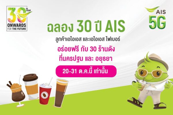 ฉลองครบรอบ 30 ปี AIS ลูกค้าเอไอเอสและเอไอเอส ไฟเบอร์อร่อยฟรีกับร้านPrivilege AIS ในจังหวัดนครปฐม ทั้งเครื่องดื่มและเมนูพิเศษ จาก 15 ร้านดัง เลือกรับสิทธิพิเศษได้ต้งแต่วันที่ 20-31 ตุลาคม นี้เท่านั้น เงื่อนไขรับสิทธิ์ง่ายๆ