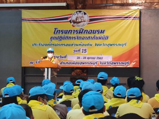 เป็นประธานเปิดโครงการฝึกอบรมหลักสูตรชุดปฏิบัติการจิตอาสาภัยพิบัติ ประจำองค์กรปกครองส่วนท้องถิ่น รุ่นที่ 15 ระหว่างวันที่ 26 – 28 ตุลาคม 2563 ตามที่กระทรวงมหาดไทย ได้กำหนดแนวทางการขับเคลื่อนการปฏิบัติงานของชุดปฏิบัติการจิตอาสาประจำองค์กรปกครองส่วนท้องถิ่น ให้แก่ อบต.และเทศบาล ทุกแห่ง โดยรับสมัครจิตอาสาภัยพิบัติอย่างน้อย 50 คน ต่อแห่ง เพื่อเป็นผู้ช่วยเจ้าพนักงานในการป้องกันและบรรเทาสาธารณภัยในระดับพื้นที่ โดยกำหนดหลักสูตรการฝึกอบรมชุดปฏิบัติการจิตอาสาภัยพิบัติประจำองค์กรปกครองส่วนท้องถิ่น ระยะเวลาการฝึกอบรมจำนวน 3 วัน ขอบเขตวิชาประกอบด้วย 15 วิชา 27 ชั่วโมง แบ่งเป็นการบรรยาย จำนวน 8 วิชา ระยะเวลา 12 ชั่วโมง และการฝึกปฏิบัติจำนวน 6 วิชา ระยะเวลา 15 ชั่วโมง และให้จัดทำแผนปฏิบัติการฝึกอบรมให้ครบทุกแห่ง