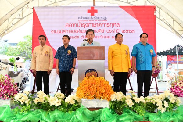 จากนั้น ผู้ว่าราชการจังหวัดนครฐมได้เป็นประธานเปิดกิจกรรมการออกร้านมัจฉากาชาด และการออกรางวัลสลากบำรุงกาชาดการกุศล ซึ่งจัดขึ้นโดยเหล่ากาชาดจังหวัดนครปฐม เพื่อหารายได้เป็นทุนช่วยเหลือกิจกรรมสาธารณกุศล การบรรเทาทุกข์ผู้ประสบภัย ประสบความเดือดร้อน รวมทั้งผู้ด้อยโอกาสในด้านต่างๆ โดยการจำหน่ายสลากมัจฉากาชาด ใบละ 20 บาท เพื่อลุ้นรางวัลใหญ่ ได้แก่ รถจักรยานยนต์รถจักรยาน ตู้เย็น หม้อหุงข้าว และสื่งของอื่นๆ อีกมากมาย นอกจากนี้ยังมีการออกร้านค้าที่หลากหลายรอบองค์พระปฐมเจดีย์ การจำหน่ายผลิตภัณฑ์ท้องถิ่น และผลิตผลทางด้านการเกษตรอีกเป็นจำนวนมาก