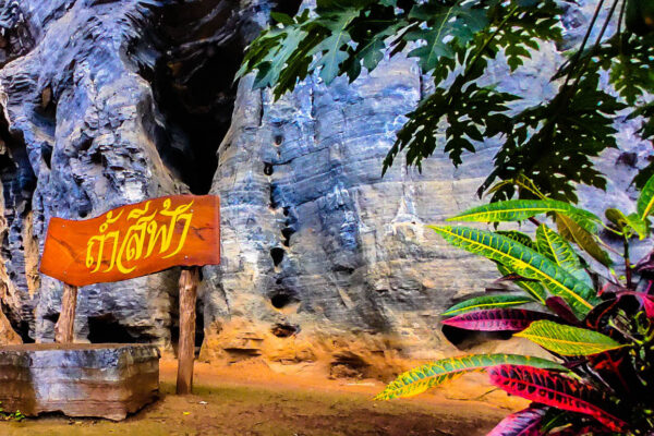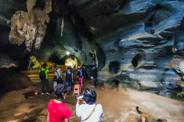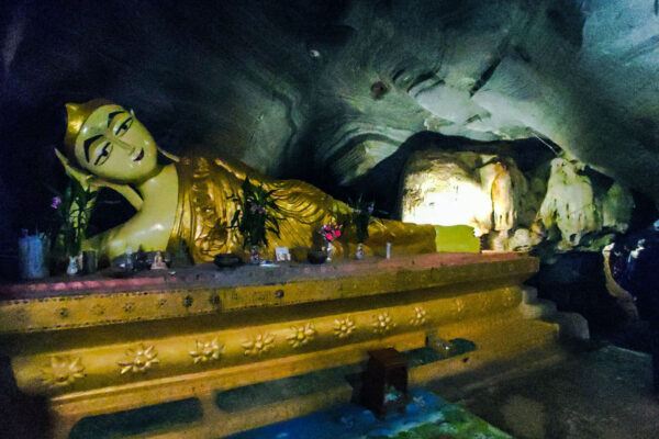 ภายในบริเวณโถงถ้ำด้านหน้า มีพระพุทธรูปนอนศิลปะพม่าให้เราได้กราบสักการะกันก่อนเข้าถ้ำ สังเกตตรงปลายเท้าของพระพุทธรูปจะมีหินก้อนใหญ่สีขาว ลักษณะคล้ายกับหัวช้าง มองดูเหมือนว่ามีช้างสีขาวนอนหมอบอยู่ใกล้ๆ พระพุทธรูป อีกทั้งโถงถ้ำบริเวณนี้ก็จะมีหินย้อยสวยงาม และมีพื้นผิวของหินสีเทาอมฟ้า มีลวดลายสีขาวสลับเป็นแนวดูเป็นเส้นพลิ้วไหว ส่วนภายนอกถ้ำ พบว่ามีผึ้งหลวงมาอาศัยทำรังอยู่จำนวนมาก ซึ่งช่วยสร้างสรรค์ให้ธรรมชาติน่าชมยิ่งขึ้น โดยถ้ำนี้อยู่ห่างจากตัวเมืองม่สอดประมาณ 30 กิโลเมตร เปิดให้เยี่ยมชมได้ทุกวันตั้งแต่เช้าจนค่ำ ติดต่อสอบถามรายละเอียดได้ที่ ททท.สำนักงานตาก 055-514341-3 facebook: TATTAK