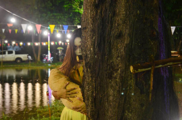 โดยที่ตนเองและกลุ่มเพื่อนแต่งตัวมาในชุดผีวันนี้ก็เพื่ออยากสร้างสีสันเพื่อให้เข้ากับวันลอยกระทงและวันฮาโลวีน