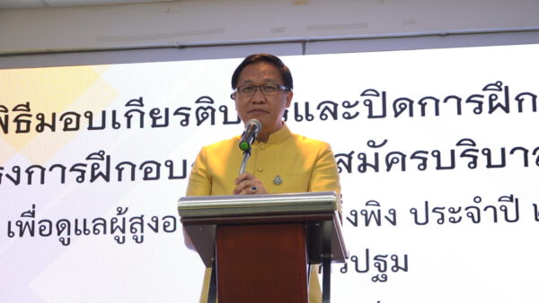 วันที่ 9 พฤศจิกายน พ.ศ. 2563 เวลา 10.00 น. ณ ห้องประชุมชั้น 3 สำนักงานเทศบาลนครนครปฐม จังหวัดนครปฐม นายประยูร รัตนเสนีย์ อธิบดีกรมส่งเสริมการปกครองท้องถิ่น ร่วมกับ น.พ.สุวรรณชัย วัฒนายิ่งเจริญชัย อธิบดีกรมอนามัย เป็นประธานในพิธีมอบเกียรติบัตรให้แก่ผู้ผ่านการฝึกอบรมในโครงการอาสาสมัครบริบาลท้องถิ่นเพื่อดูแลผู้สูงอายุที่มีภาวะพึ่งพิง ประจำปี พ.ศ. 2563 รุ่นที่ 1 – 4 ของจังหวัดนครปฐมและมี นายขจร ศรีชวโนทัย รองอธิบดีกรมส่งเสริมการปกครองท้องถิ่น นายธีระยุทธสำราญทรัพย์ ผู้ตรวจราชการกรม หัวหน้าส่วนราชการในจังหวัดนครปฐม นายกองค์กรปกครองส่วนท้องถิ่นในพื้นที่ ร่วมเป็นเกียรติในพิธี โดยมีนายหมวดเอกเอกพันธุ์ คุปตวัช นายกเทศมนตรีนครนครปฐม และนายไอศูรย์ ดีรัตน์ ท้องถิ่นจังหวัดนครปฐม กล่าวรายงาน