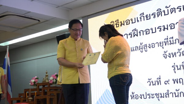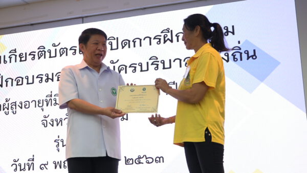 ด้านนพ.สุวรรณชัย กล่าวต่อว่า “การดำเนินการในระยะต่อไปของกรมอนามัยได้เร่งขับเคลื่อนการดูแลสุขภาพผู้สูงอายุที่มีภาวะพึ่งพิง เพื่อรองรับสังคมสูงอายุอย่างสมบูรณ์ในปี 2565 โดยพัฒนาศักยภาพบุคลากรในการปฏิบัติงานและจัดทำหลักสูตรการอบรมผู้จัดการการดูแลผู้สูงอายุ (Care Manager) รวมถึงหลักสูตรผู้ดูแลผู้สูงอายุ(Caregiver) 70 ชั่วโมงและ 420 ชั่วโมง ซึ่งขณะนี้มีผู้ผ่านการอบรมและปฏิบัติงานในพื้นที่ที่เป็น Care Manager จำนวน 13,615 คน Caregiver จำนวน 86,404 คน และได้ขยายความครอบคลุมการดูแลผู้สูงอายุที่มีภาวะพึ่งพิงและประชาชนทุกกลุ่มวัยที่มีภาวะพึ่งพิงให้เข้าถึงระบบการดูแลส่งเสริมฟื้นฟูสุขภาพครอบคลุมทุกสิทธิการรักษาและการเข้าถึงหน่วยบริการ โดยเฉพาะบริการด้านการสร้างเสริมสุขภาพ ป้องกันโรคและบริการฟื้นฟูสุขภาพด้านการแพทย์และสาธารณสุขตามชุดสิทธิประโยชน์ สำหรับระบบการดูแลผู้สูงอายุระยะยาว (Long Term Care) เน้นบูรณาการด้านการจัดบริการทางด้านสาธารณสุขและสังคม โดยให้ครอบครัว ชุมชน และหน่วยงานภาคีเครือข่ายที่เกี่ยวข้อง ในระดับท้องถิ่น ชุมชนมีส่วนร่วมในการจัดระบบบริการสาธารณสุขและสังคมมากขึ้น” อธิบดีกรมอนามัย กล่าว