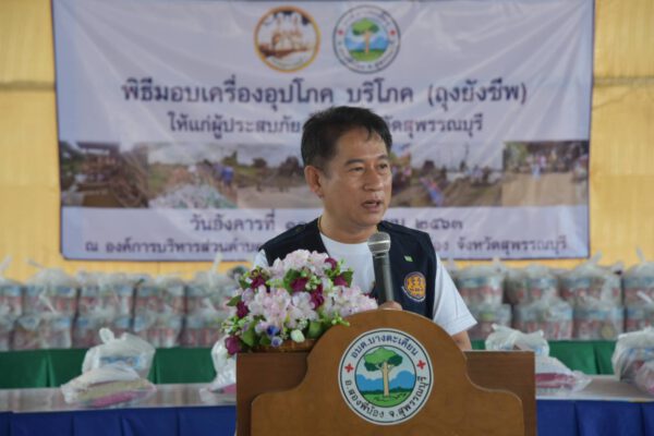โดยได้รับการสนับสนุนจากกรมป้องกันและบรรเทาสาธารณภัย เพื่อเป็นการบรรเทาความเดือดร้อนให้กับราษฎรที่ประสบอุทกภัยดังกล่าว