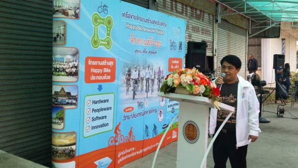 พร้อมกล่าว ชื่นชมในความร่วมมือ ร่วมแรง ประสานใจ ประสานงานของคณะอนุกรรมการโครงการพัฒนาเครือข่ายจักรยานสร้างสุขประเทศไทยขึ้น ซึ่งนับเป็นกิจกรรมที่เป็นประโยชน์ และมีคุณค่ายิ่งในการส่งเสริมให้ประชาชนเกิดสุขภาวะในด้านต่างๆ ทั้งทางร่างกาย อารมณ์ สังคม ผ่านการสร้างเครือข่ายที่เข้มแข็งและกิจกรรมการรณรงค์ต่างๆ ซึ่งเป็นการสร้างความสุขในระดับจังหวัด ภูมิภาค และประเทศ อีกทั้งถือได้ว่ากิจกรรมนี้เป็นส่วนหนึ่ง เพื่อให้ประชาชนมีคุณภาพชีวิตที่ดี มีความผาสุกในการดำรงชีวิต เพราะการใช้จักรยาน นอกจากจะส่งเสริมสุขภาพของประชาชนแล้ว ยังช่วยลดการใช้พลังงาน ลดมลภาวะ และช่วยแก้ปัญหาภาวะโลกร้อน ถือเป็นการช่วยกันรักษาสิ่งแวดล้อม ซึ่งเป็นอีกหนึ่งแนวทางที่จะช่วยทำให้บ้านเมืองเราน่าอยู่ยิ่งขึ้นที่สำคัญ ขอขอบคุณคณะอนุกรรมการดำเนินโครงการ และผู้เกี่ยวข้องทุกท่านเป็นอย่างสูงและขอให้จัดงาน ดำเนินไปด้วยความเรียบร้อย และบรรลุวัตถุประสงค์ที่วางไว้ทุกประการ และเชื่อมั่นว่า การร่วมทำกิจกรรมอย่างมีส่วนร่วม ได้พบปะ แลกเปลี่ยนประสบการณ์และความรู้ และได้ร่วมบูรณาการงานร่วมกันจากทุกภาคส่วนอย่างเป็นรูปธรรม