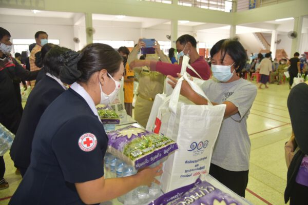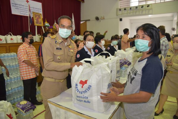 นายปรีชา ทองคำ รองผู้ว่าราชการจังหวัดสุพรรณบุรี เป็นประธานในพิธีมอบชุดธารน้ำใจ สภากาชาดไทย เพื่อบรรเทาทุกข์ผู้ประสบภัย ณ ศาลาอเนกประสงค์เทศบาลตำบลบ้านแหลม อำเภอบางปลาม้า จังหวัดสุพรรณบุรี