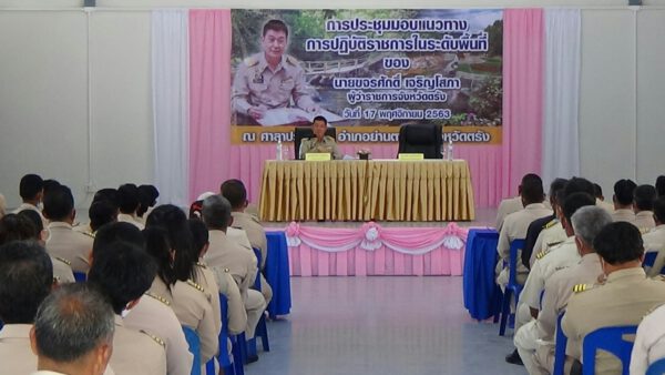 ผู้ว่าราชการจังหวัดตรัง มอบนโยบายและแนวทางการปฏิบัติราชการในพื้นที่อำเภอย่านตาขาว เน้นการทำงานให้สอดรับนโยบายของรัฐบาล และขอบคุณทุกฝ่ายที่ช่วยกันเฝ้าระวังการแพร่ระบาดของเชื้อไวรัสโคโรนา 2019 (โควิด -19)