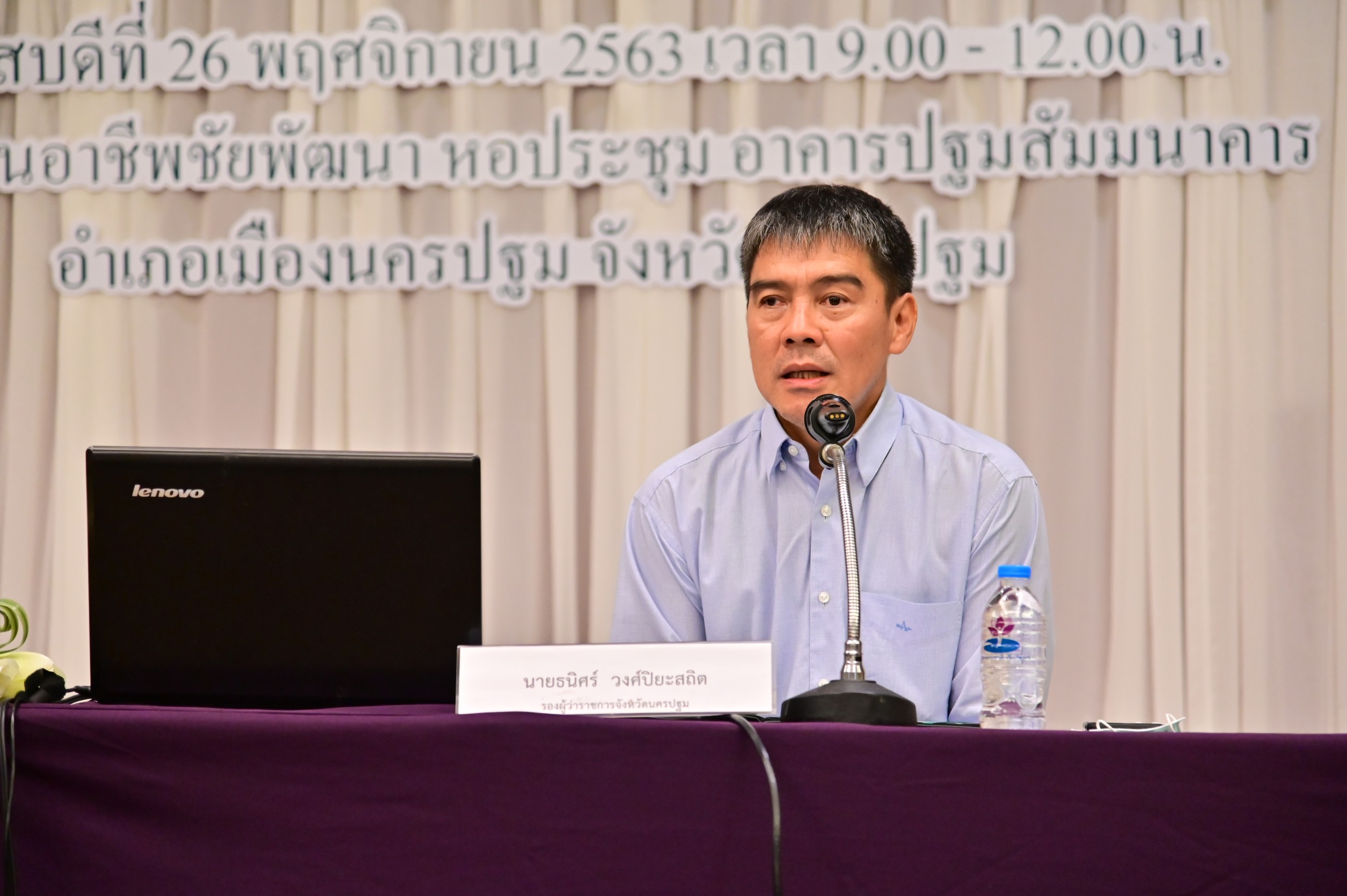 วันนี้ (26 พ.ย.63) ที่อุทยานการอาชีพชัยพัฒนา หอประชุมอาคารปฐมสัมมนาคาร นายธนิศร์ วงศ์ปิยะสถิตย์ รองผู้ว่าราชการจังหวัดนครปฐม เป็นประธานเปิดการประชุมสรุปผลการประชุมกลุ่มย่อย