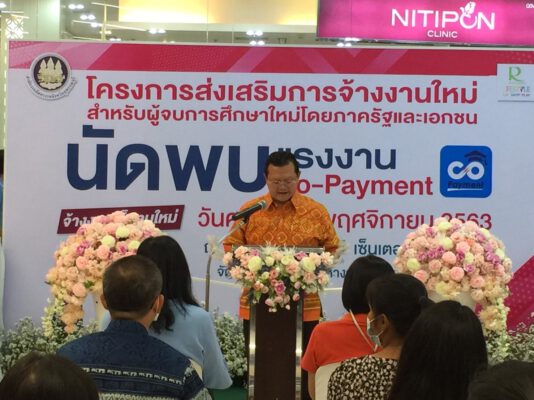 พร้อมกล่าวว่า สืบเนื่องจากในไตรมาส ๒ ปี พ.ศ. ๒๕๖๓ ข้อมูลจากสำนักงานสถิติแห่งชาติพบว่า มีผู้ว่างงานจำนวน 745,000 คน (เจ็ดแสนสี่หมื่นห้าพันคน) และจากผลกระทบการระบาดของโรคติดเชื้อไวรัสโคโรนา ๒๐๑๙ ส่งผลให้นายจ้าง/สถานประกอบการจำนวนมากมีการปลดพนักงาน หรือหยุดการประกอบกิจการ เพื่อเป็นการบรรเทาผลกระทบและส่งเสริมการมีงานทำให้แก่ผู้จบการศึกษาใหม่ กระทรวงแรงงาน